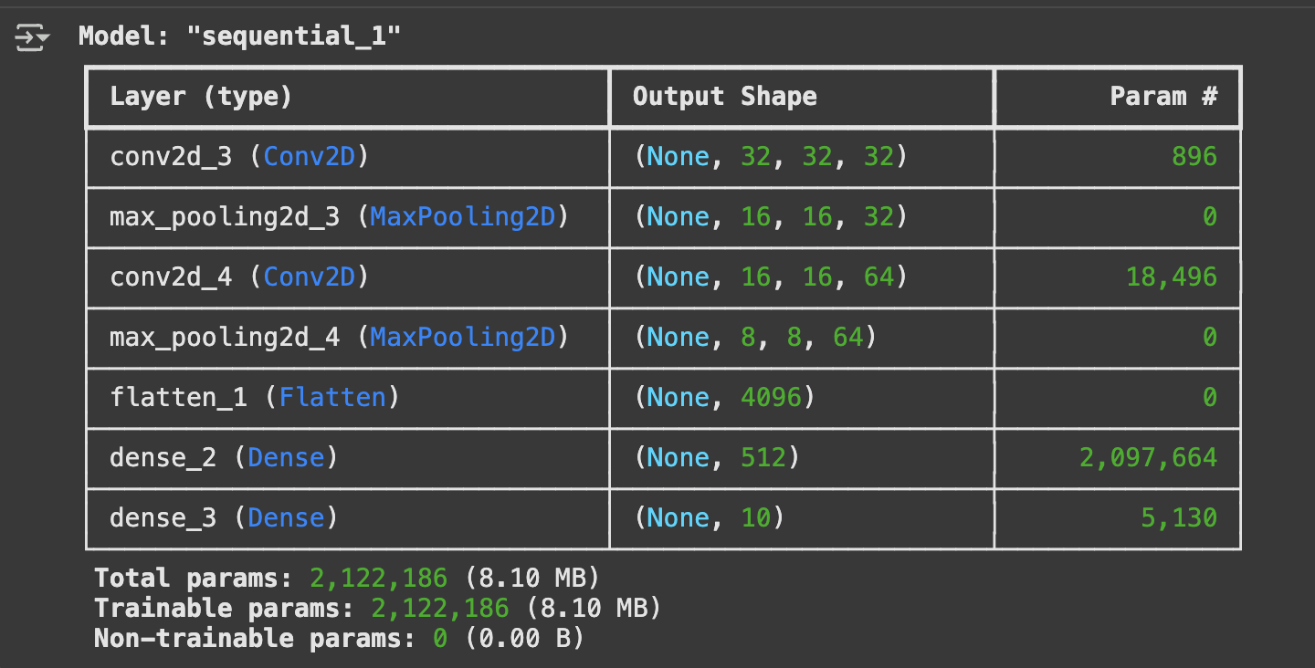 아래는 기본적인 CNN 모델을 구성하는 예시 코드로, 이미지의 특징을 단계적으로 추출하고 분류하는 과정을 보여줍니다.