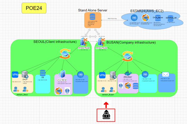 국비 지원의 마지막 종합 프로젝트로, 처음으로 자유롭게 주제를 선택하여 서버의 설계부터 구현 및 테스트까지 진행한 경험을 소개합니다. 이 프로젝트의 주제는 서버 증설로 인한 private 서버에서 public 클라우드로의 데이터 마이그레이션 작업을 구현하는 것이었습니다. 저는 3인 팀에서 조장 역할을 맡았으며, 프로젝트 전체 시나리오 작성을 담당하였습니다. 제 역할로는 DNS 서버 구축, DB 서버의 데이터를 백업 서버로 마이그레이션하는 작업, Hyper-V 트러블 슈팅, 웹 서버 구축을