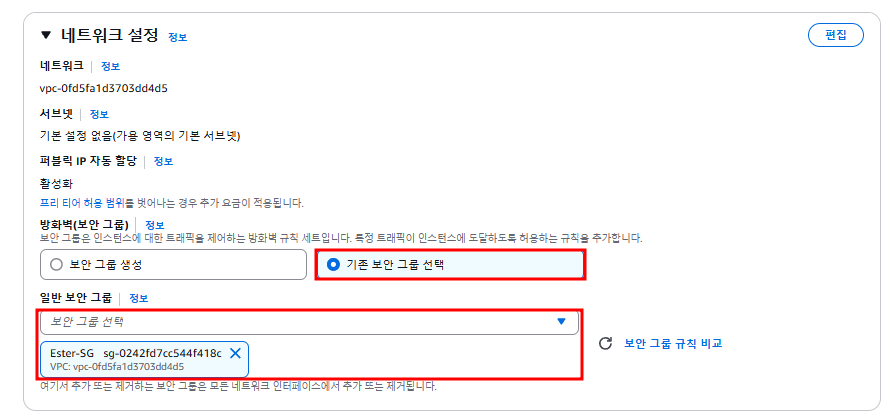 인바운드 규칙 SSH 추가(IPV4) > 오른쪽 하단의 보안 그룹 생성 클