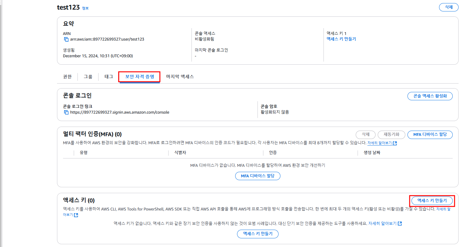 보안 자격 증명 (계정 별 설정)