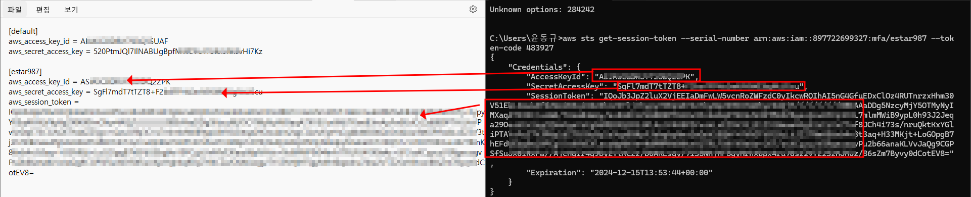 직전에 얻은 키 정보 아래와 같이 입력