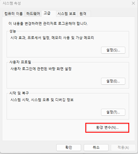 - 내 컴퓨터 속성(단축키 : win + Pause)