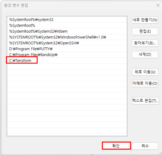 압축 해제 후 나온 terraform.exe 파일을 C:\ 디렉터리에 옮긴다.
