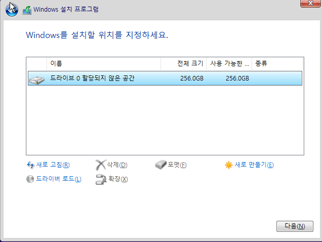 그런데 설치를 하던 중 아래와 같은 오류가 발생한다.(디스크가 보이지 않는 오류)
