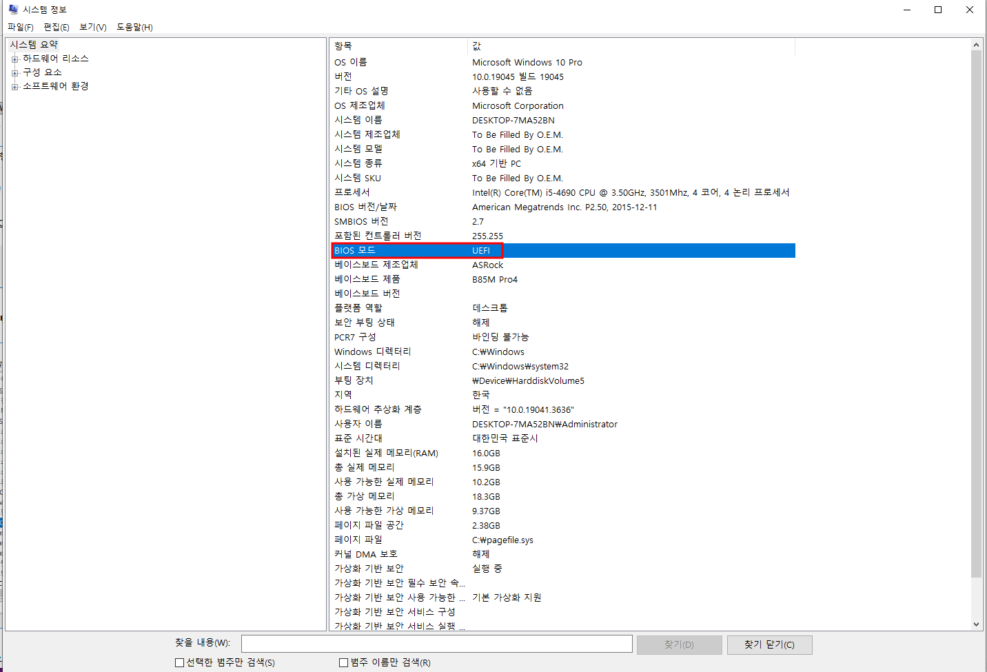 레거시 BIOS 와 UEFI 모드 확인하는 법