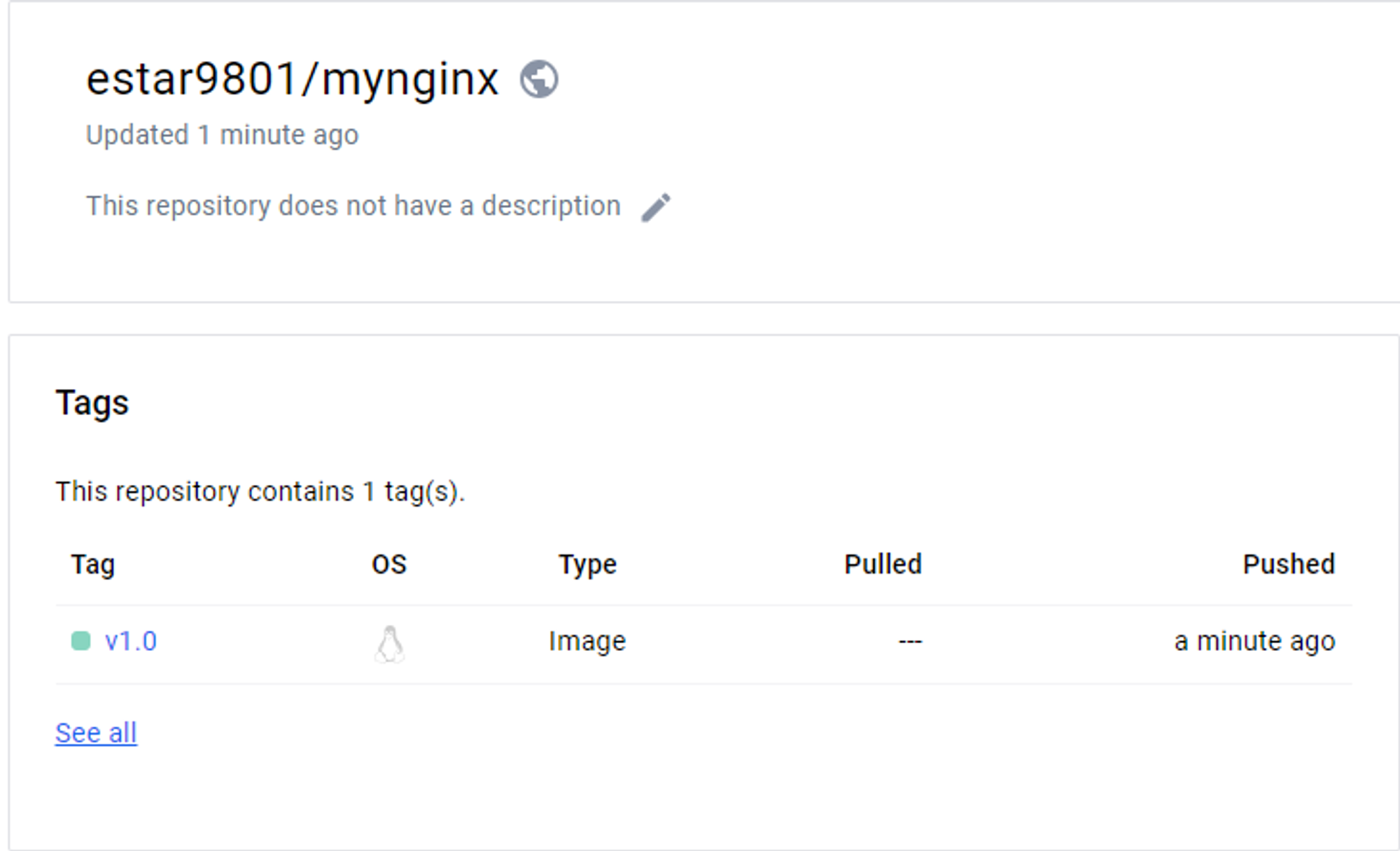 # docker image tag nginx:1.25.0-alpine estar9801/mynginx:v1.0